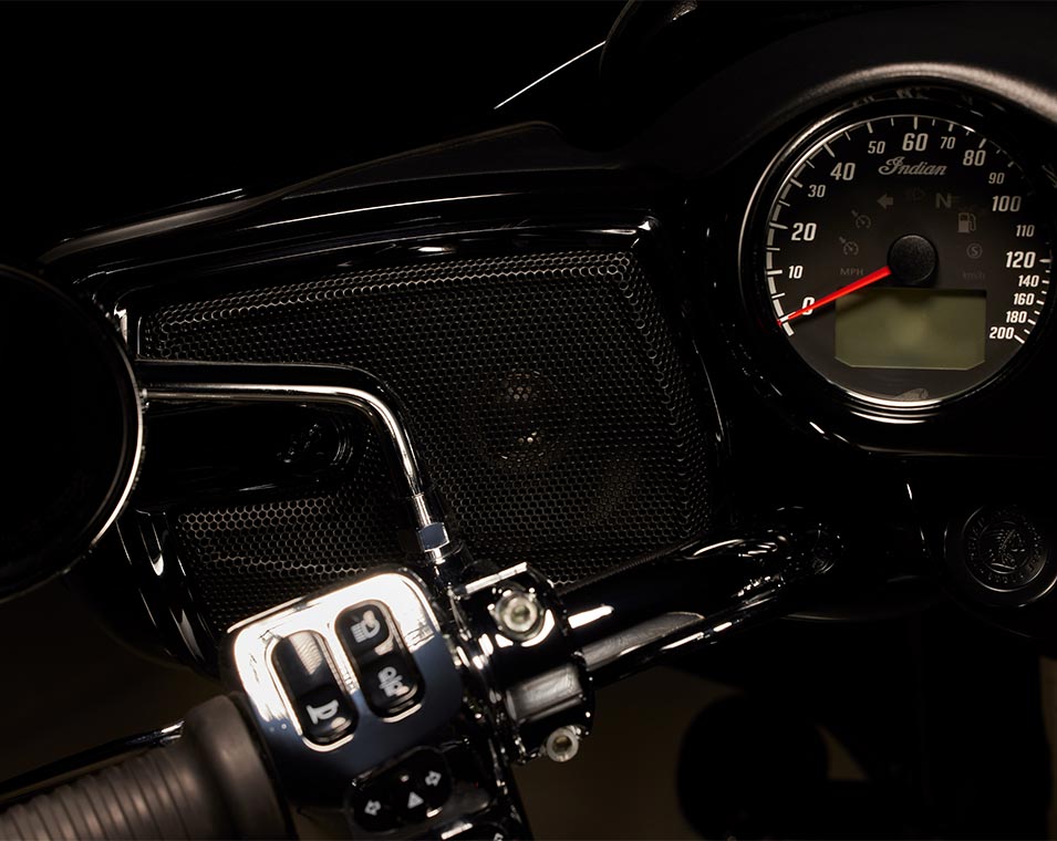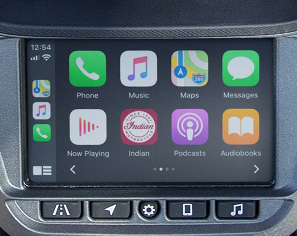 | Infotainment | 7-tommers berøringsskjerm drevet av RIDE COMMAND: 7-tommers berøringsskjerm med sanntidsklokke; omgivende lufttemperatur; lydinformasjon display; Bluetooth-status for telefon og headset; kjøretøystatus (dekktrykk, spenning, motortimer, oljeskift); kjøretøyinfo (hastighet, rekkeviddemåler, RPM, giranvisning); gjeldende kjøredata (avstand, bevegelsestid, stopptid, høyde, høydeendring); tripptellere; valg av kjøremodus; skjermens lysstyrke; utlesing av feilkode for kjøretøy; Apple CarPlay-integrasjon. |