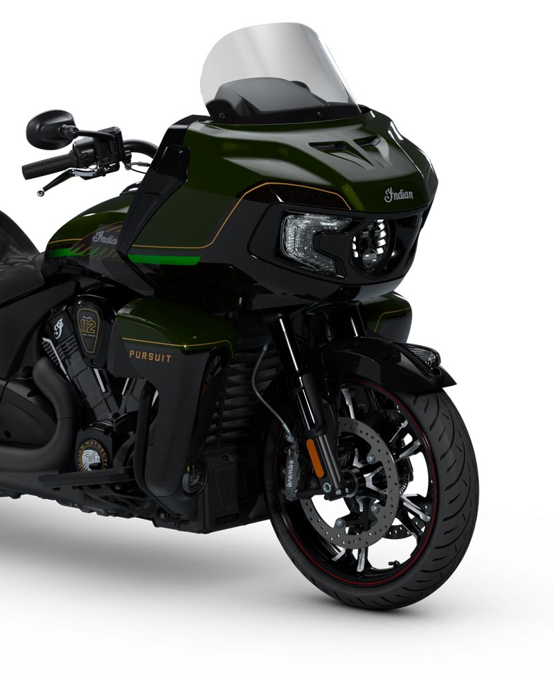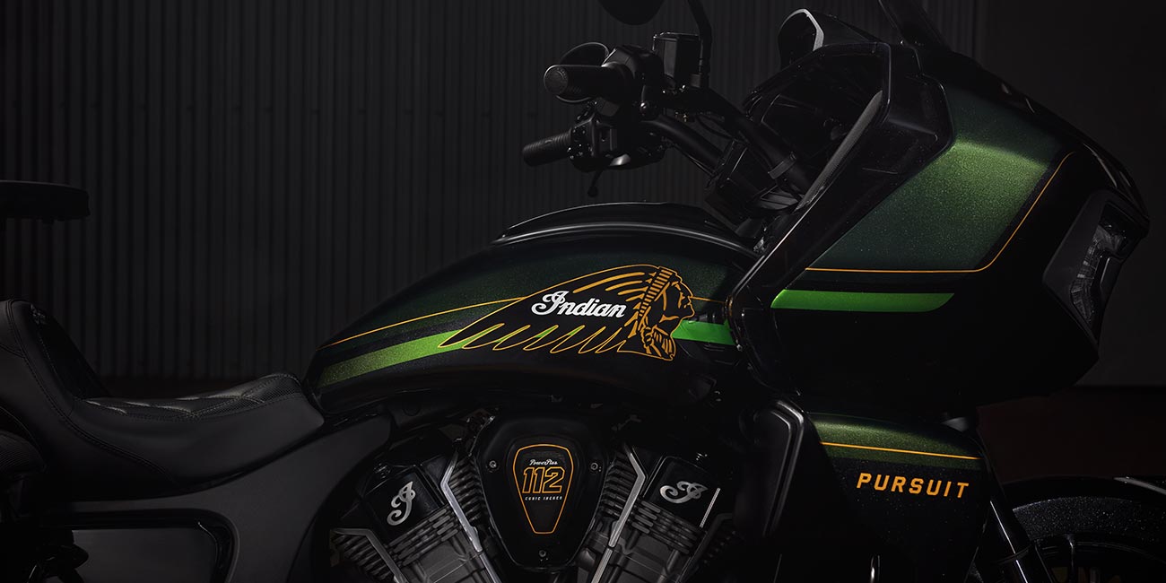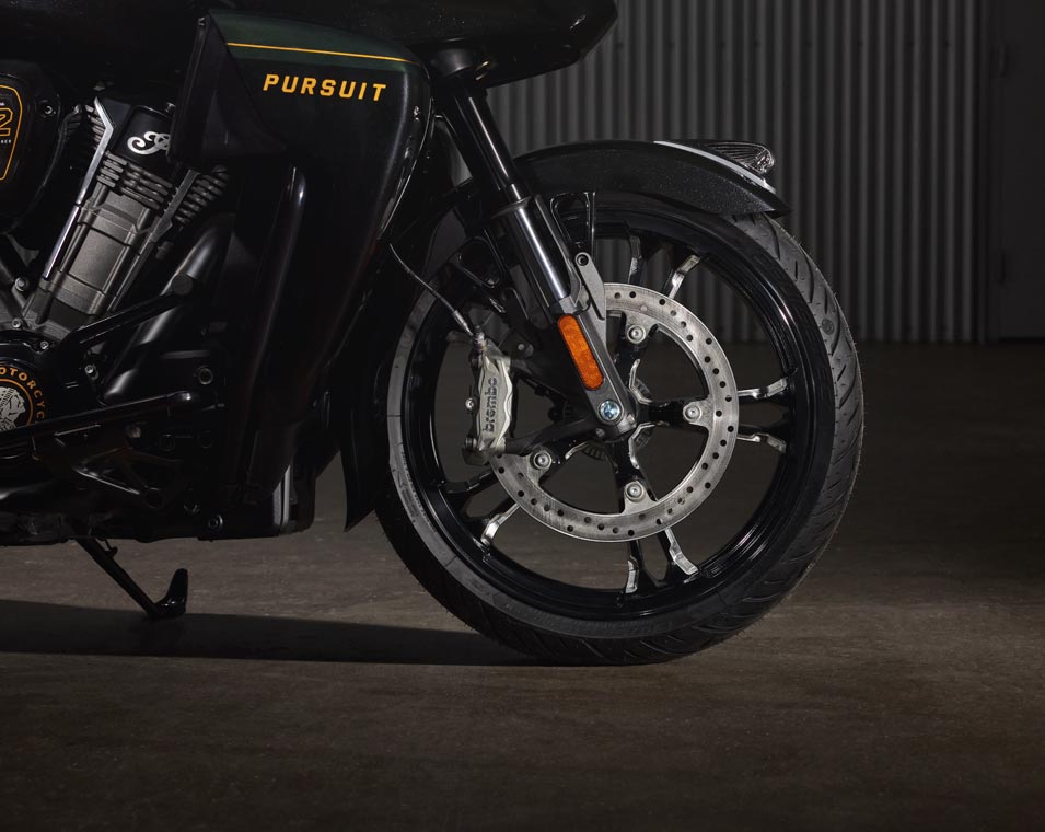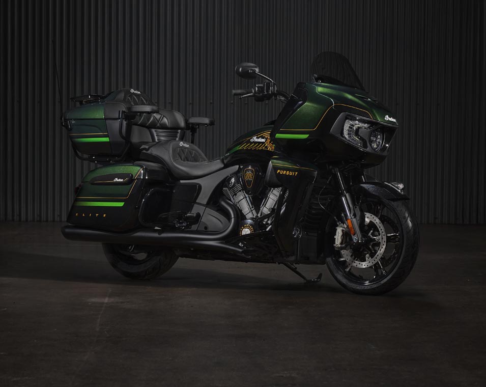 | Standard utstyr | Harde sidevesker med fjernstyrt låsemekanisme, elektronisk justerbar vindskjerm, 140+ liter lagringsplass, nøkkelfri tenning, justerbare ventiler i knekåper, USB-lader, dekktrykkovervåkingssystem (TPMS), fotbrett med Indianerhode-logo for fører og passasjer, sal med varme, brytere med baklys, varme i håndtak og armstøtte for passasjer. |